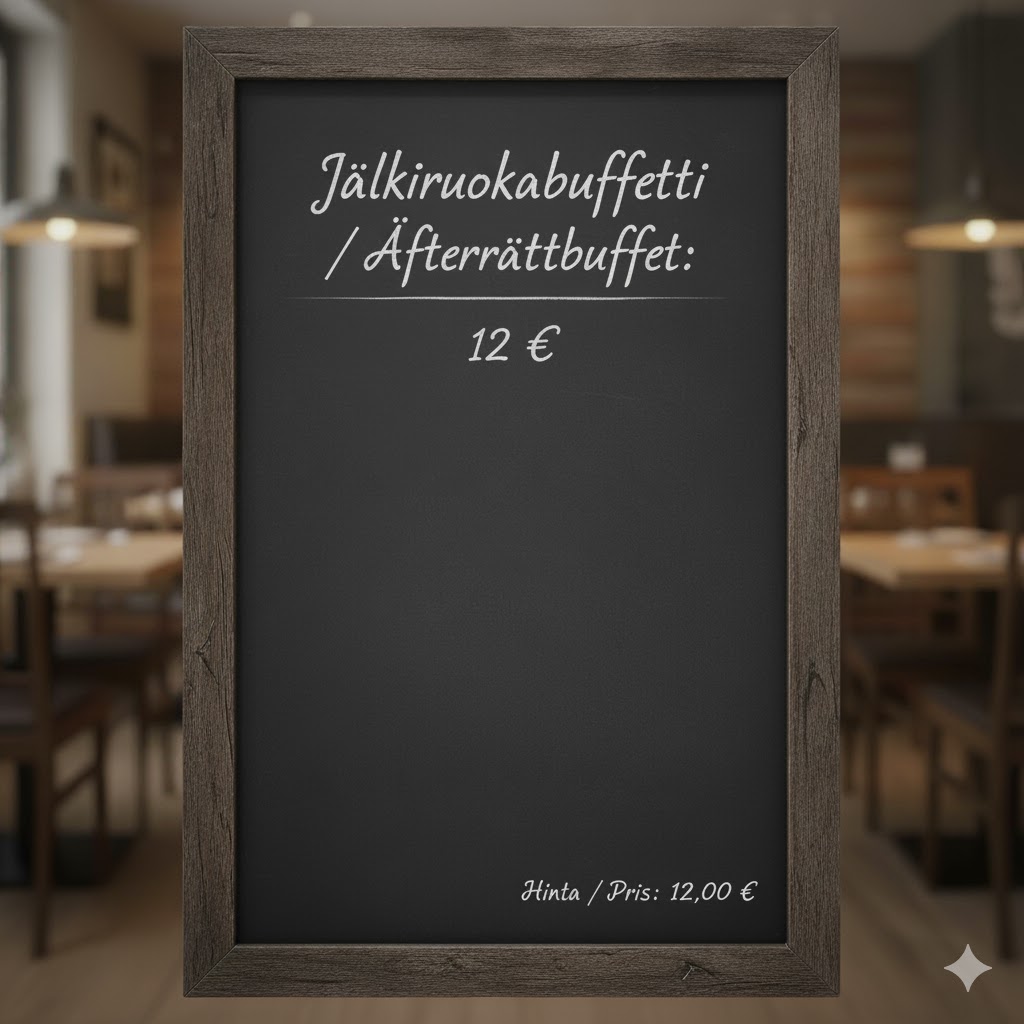Lördagen den 6 december firar vi självständighetsdagen. Mellan 12 och 16 har vi en julbuffé. Vanlig à la carte-meny finns också tillgänglig, vanligtvis fram till 20:30. Varmt välkomna. Piilota tämä ilmoitus